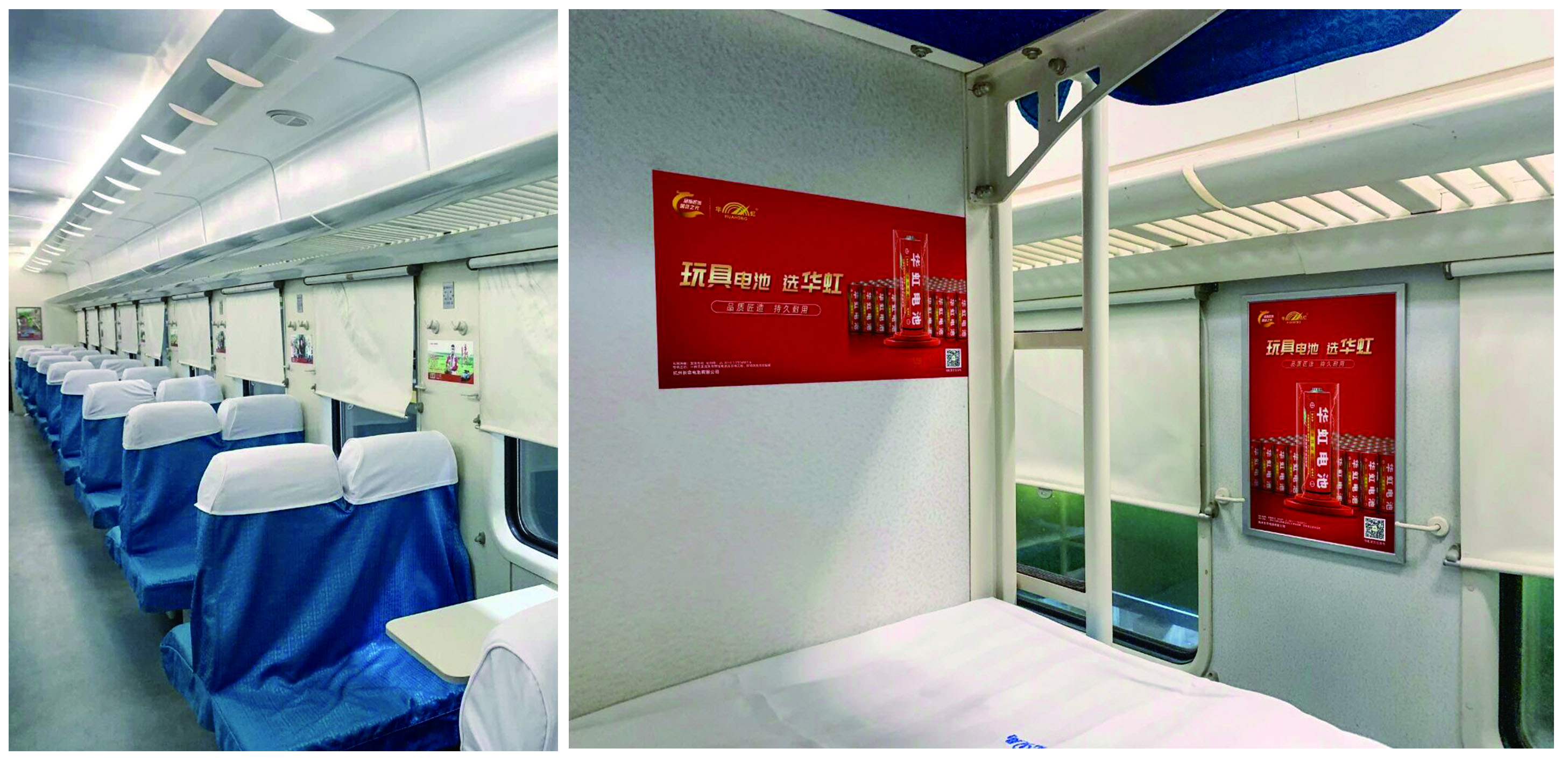 列车封闭的空间,是天然的品牌传播专场。品牌可定制场景化广告画面,将广告融入车厢环境 —— 枕片、车内展板海报画面、车身彩贴等,让品牌形象自然融入冰雪旅途氛围,为旅客营造沉浸式的品牌体验。